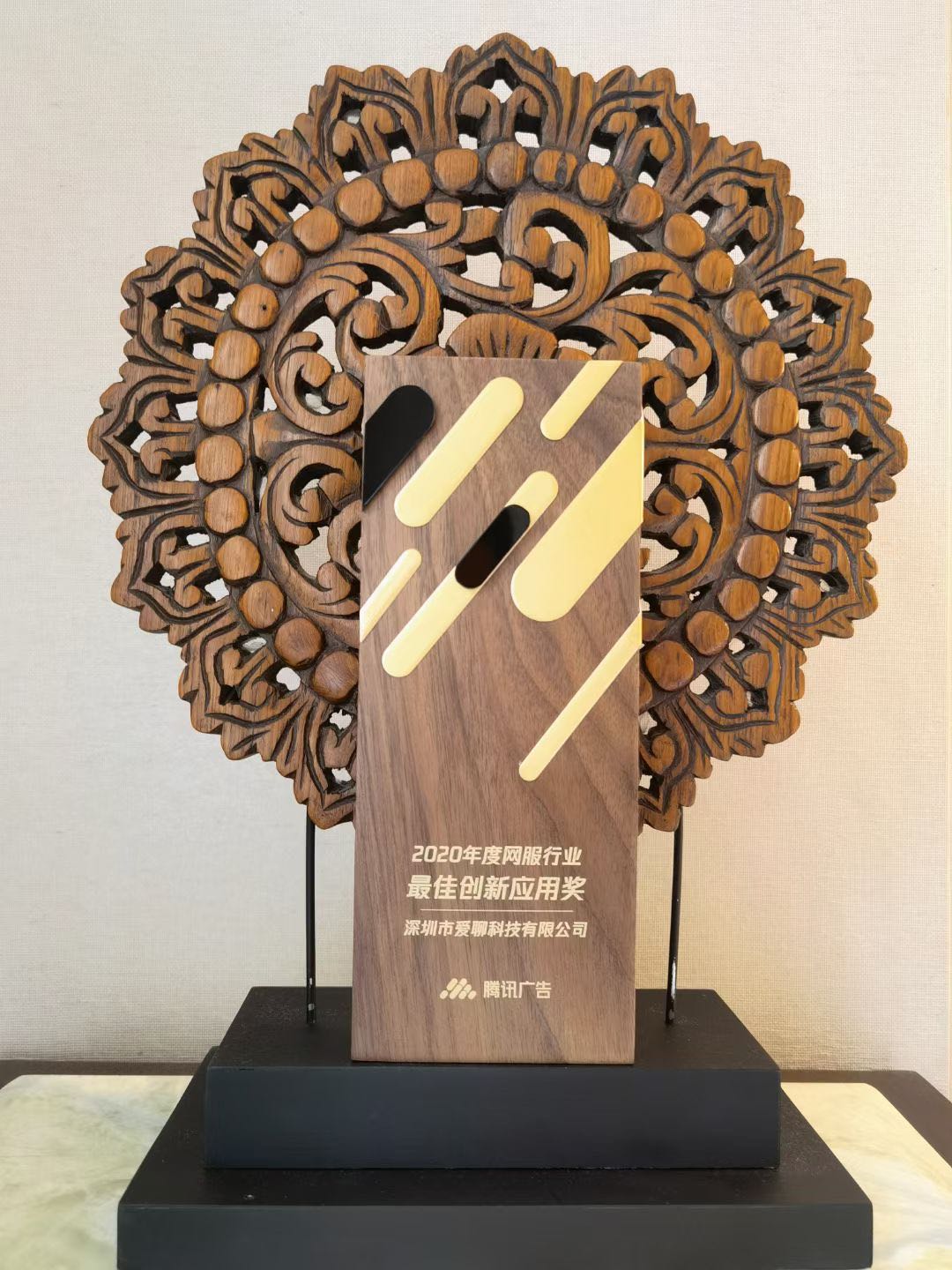 图为“腾讯广告最佳创新应用奖”奖杯