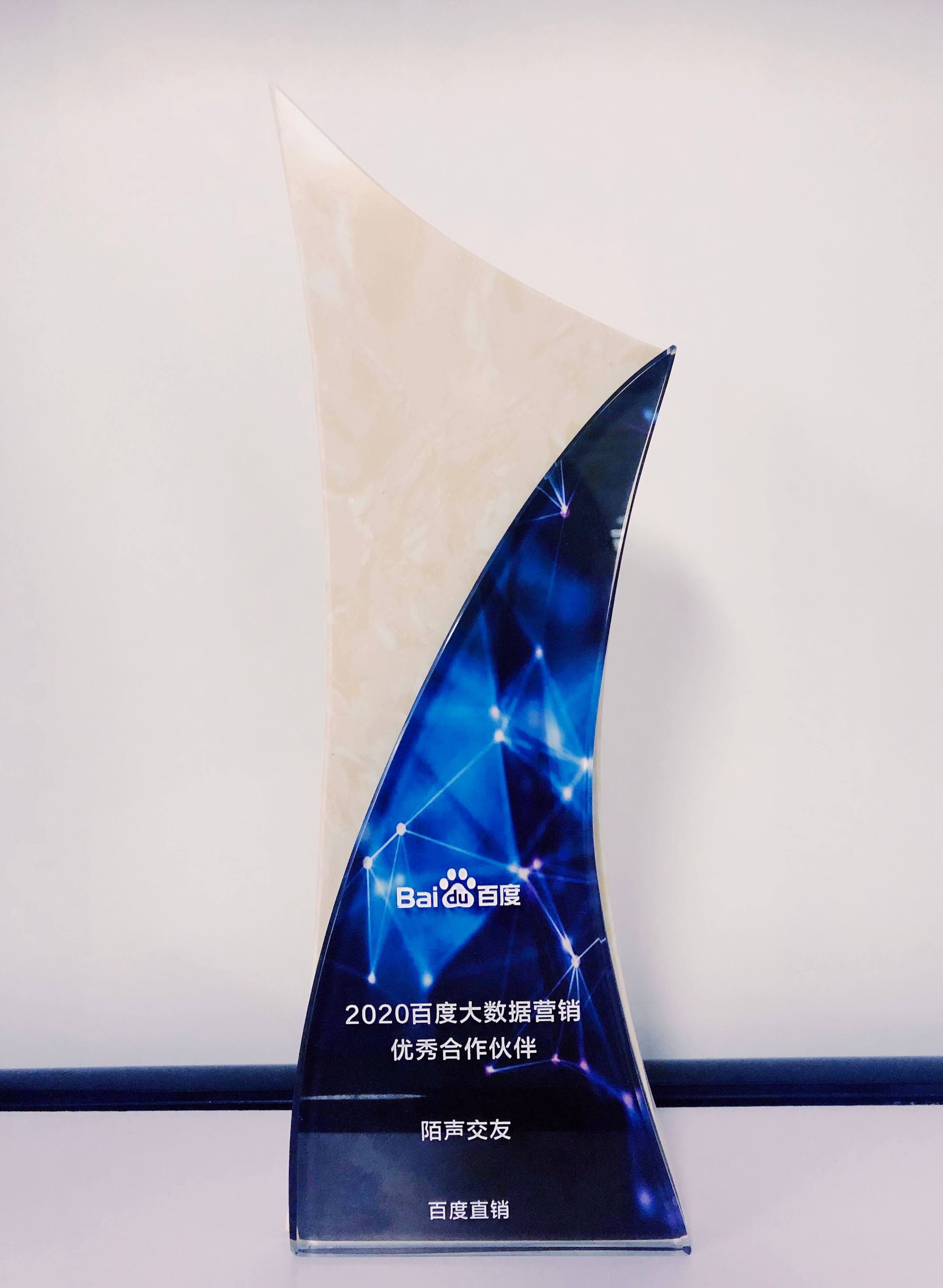 陌声APP荣获“2020百度大数据营销优秀合作伙伴”奖